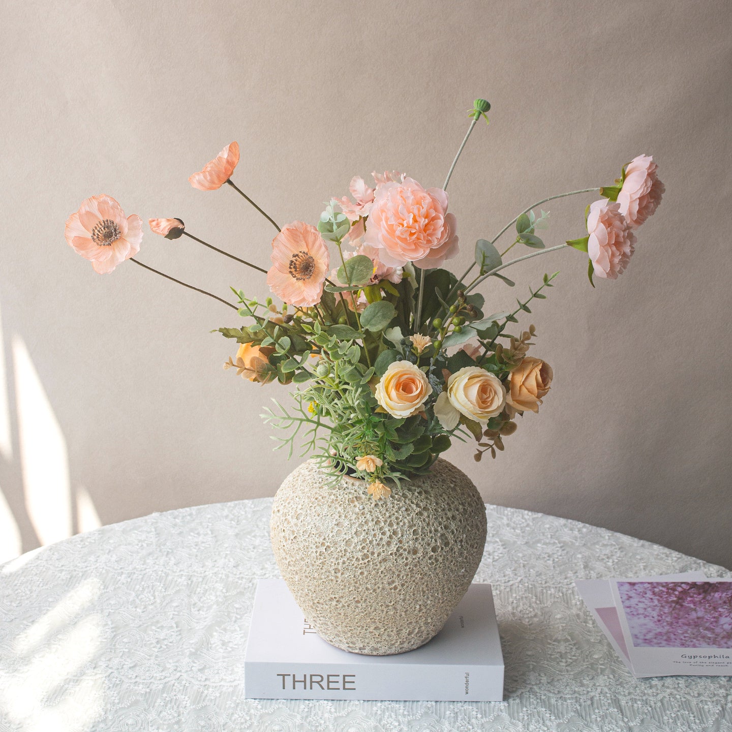 Ideal for enhancing living rooms, bedrooms, and entryways, this hand tied table flower arrangement adds immediate cozy charm to any space. Like Lila, a busy teacher who displays hers on the living room shelf, you'll enjoy compliments from guests who can't believe they're not fresh-cut flowers. This maintenance-free centerpiece brings continuous floral beauty to your daily life without any effort.